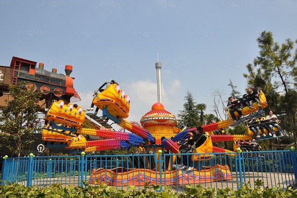 Rotary bounce carnival rides are a popular choice for amusement parks due to their dynamic motion and ability to entertain guests of all ages. These rides typically feature a central rotating platform with attached FRP seats or gondolas that bounce up and down as the ride spins. The combination of rotation and vertical motion gives riders an exhilarating experience, making it a staple attraction in many parks.